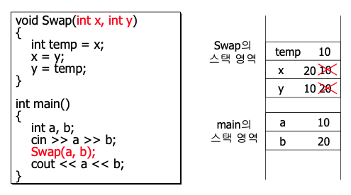 인자를 복사해서 전달한다.
