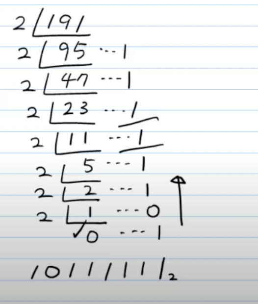 몫이 0이 될때까지 나눠주고 나머지를 아래에서 위로 적어주면
