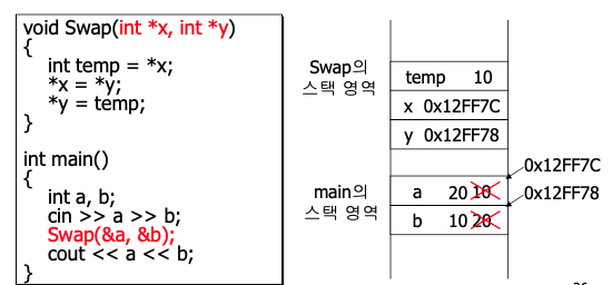 포인터에 의한 전달 (Passing by Pointer)